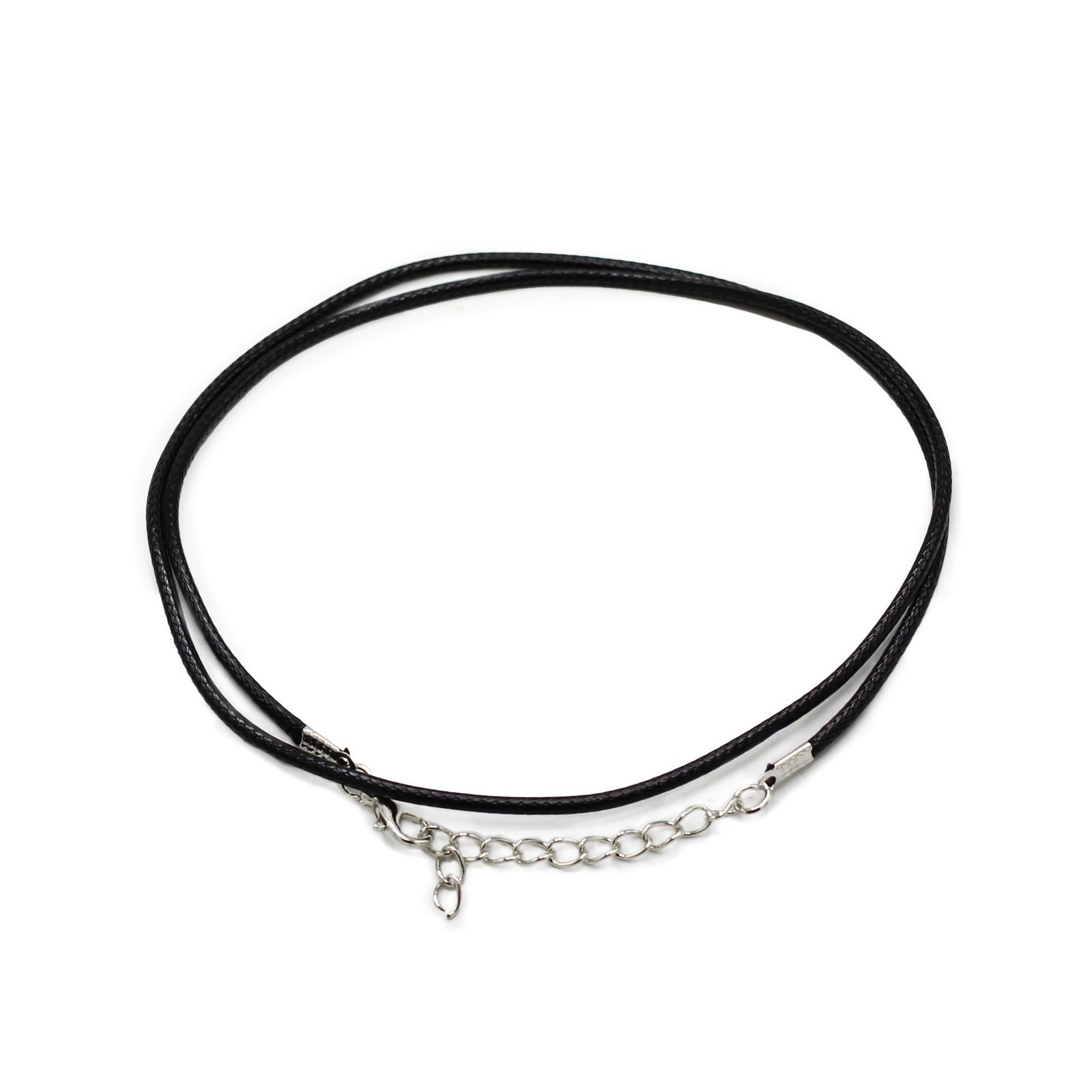 Slim black waxed cotton pendant cord with metal clasp, ideal for creating refined everyday necklaces and bracelets.