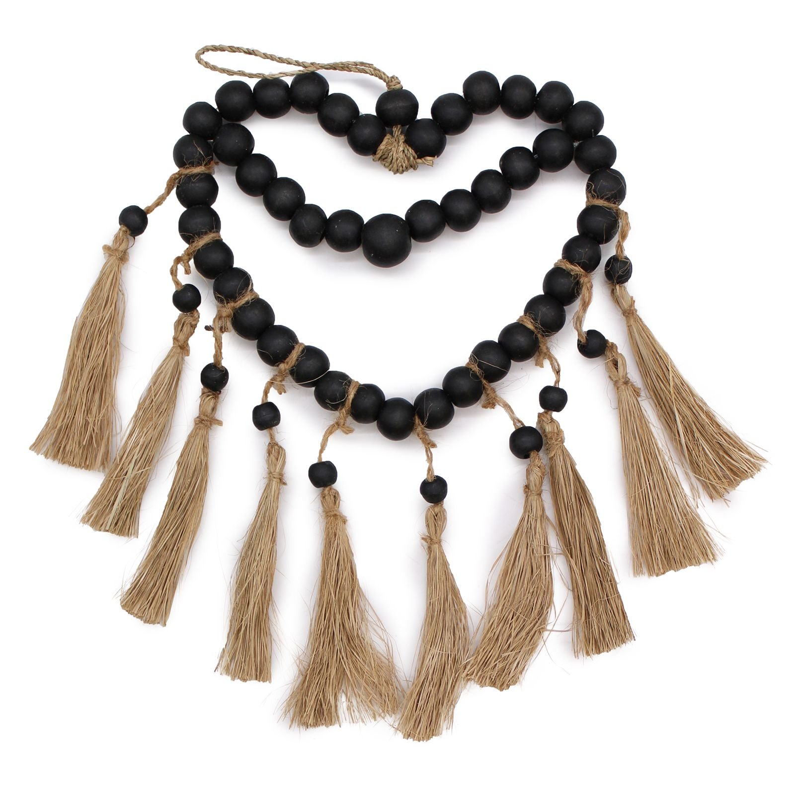 Smaller beaded heart wall decor crafted from natural seagrass, perfect for adding a subtle boho accent to cozy corners.