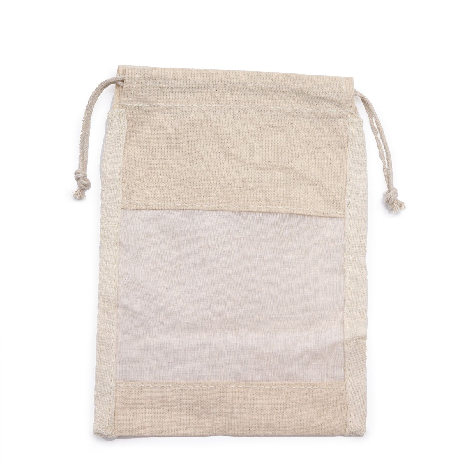 Medium reusable cotton pouch with sheer window and drawstring, perfect for presenting wellness sets, candles or self-care gifts.
