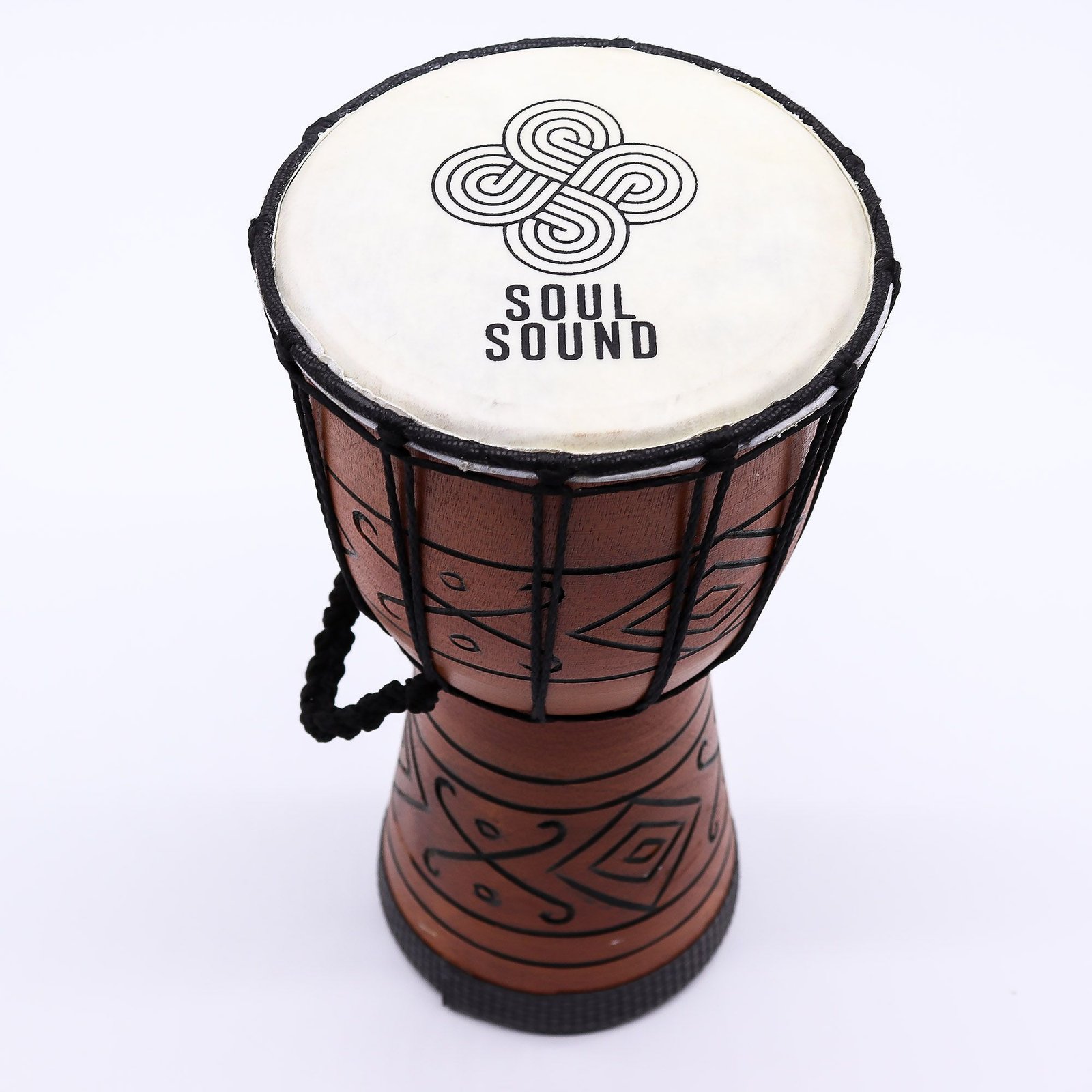 This small Soul Rhythm djembe is designed to bring grounding, earthy sound into a compact, easy-to-carry form. Despite its 30 cm height, it offers a surprisingly deep, warm tone that invites steady, meditative grooves.