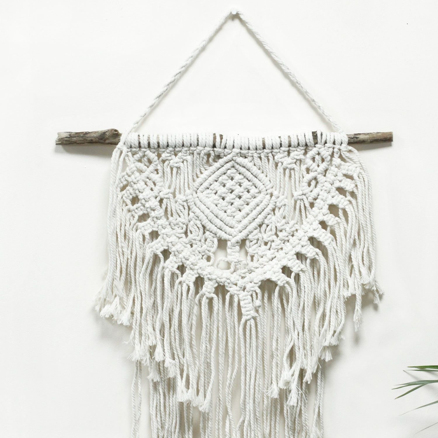 Romantic macrame wall hanging with a home-and-heart motif, crafted from natural fibres to infuse your space with warmth and tenderness.