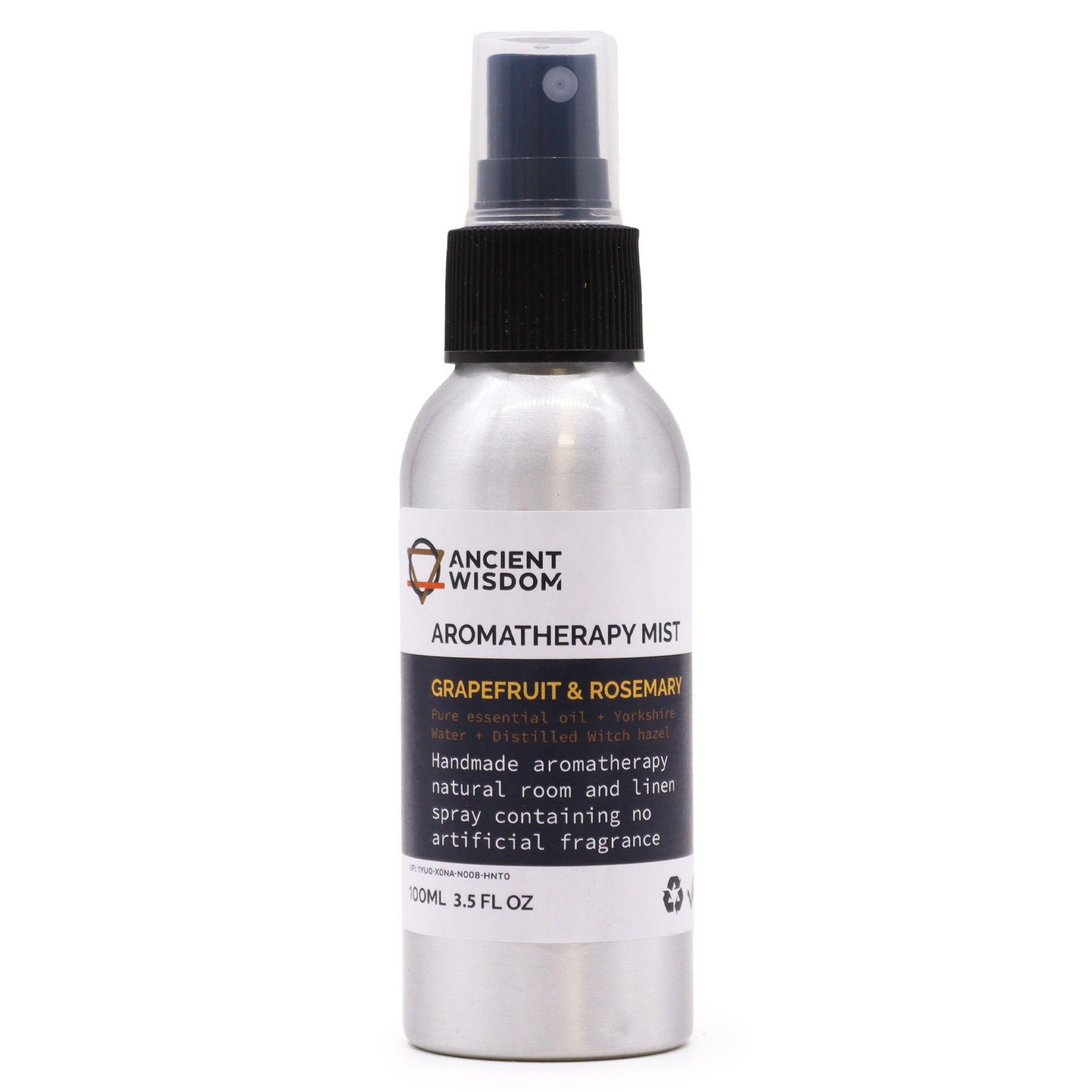Crisp aromatherapy mist with grapefruit and rosemary essential oils to uplift the mood, clear the mind, and enhance alertness.